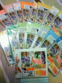 孫暦の包装や見本頑張りました!(写真)委託受付が最小サイズB6とのことで台紙つけました。無駄にレインボーだぜ!